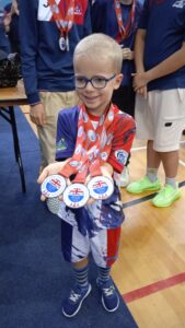 En 2025 nous avons participé pour la première fois avec le drapeau français à la compétition mondiale du cupstacking en Suisse et notre coach a remporté une médaille d’or, une d’argent et une de bronze dans sa catégorie!